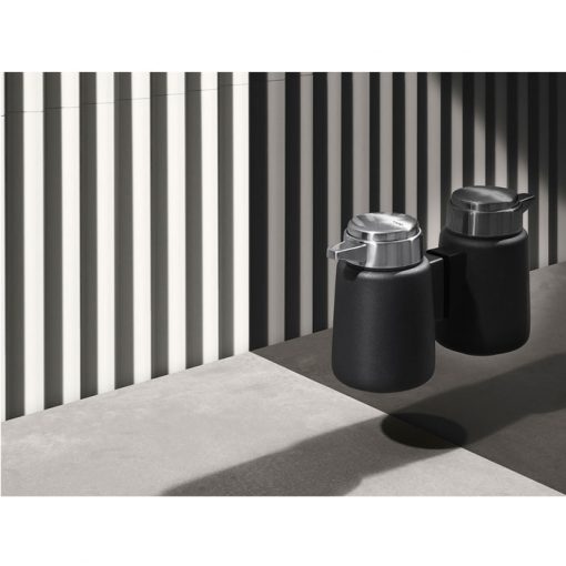 The wall-mounted version of the Vipp dispenser is a functional product for the bathroom or kitchen. A custom-designed pump ensures a proper amount of soap, sanitiser gel, or dishwashing liquid. The wall-mounted Vipp dispenser can be easily removed from the wall bracket.