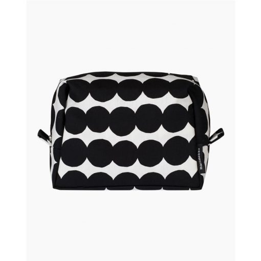The large Vilja cosmetic bag is made of heavyweight cotton and it is decorated with the Räsymatto pattern, which is printed in Helsinki. The bag has a zipper closure, dirt repellent on the fabric and a nylon lining. There are two pockets and places for brushes inside.