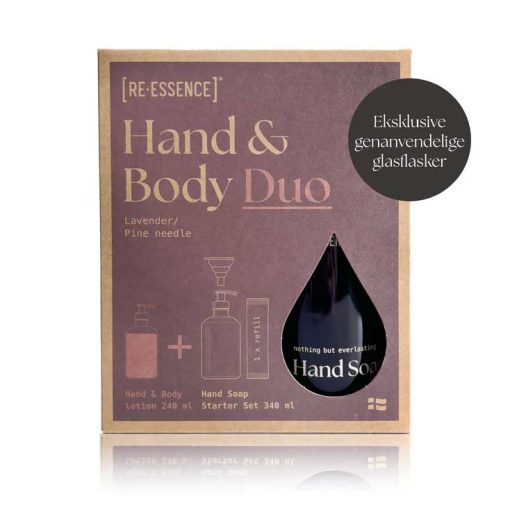 The DUO Gift Box is a luxurious set featuring both Hand Soap and Hand & Body Lotion, combining elegance, eco-friendliness, and our signature scent of soothing lavender and revitalizing pine needle.