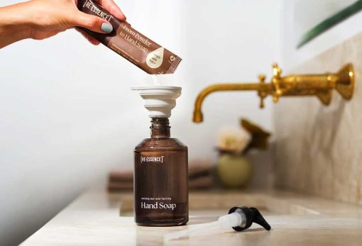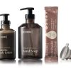 Both products come in matching glass dispensers, crafted in Italy and designed to be refilled again and again.