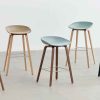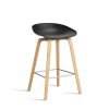 The bar stool About A Stool AAS 32 has the same capacity for transformation as the other designs in the series, ranging from a minimalistic plastic stool to a more full-bodied upholstered version. With a curved backrest and long, elegant wooden legs, it enjoys a simple yet strong visual presence that makes it ideal as a bar stool in a public environment, as well as for informal meetings and meals. Available in two heights and in a range of wood finishes and colours.
