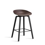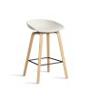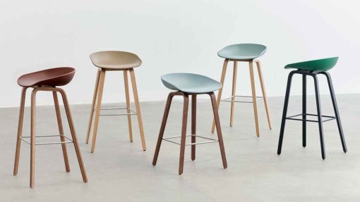 The bar stool About A Stool AAS 32 has the same capacity for transformation as the other designs in the series, ranging from a minimalistic plastic stool to a more full-bodied upholstered version. With a curved backrest and long, elegant wooden legs, it enjoys a simple yet strong visual presence that makes it ideal as a bar stool in a public environment, as well as for informal meetings and meals. Available in two heights and in a range of wood finishes and colours.