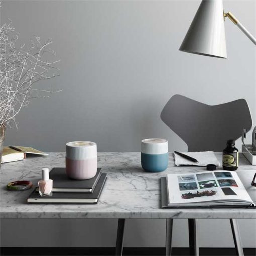 The inspiration for the delicate pink shade of this Fluted Contrast mug comes from the pink Dahlia that blooms during the warm summer months. Combine the 33 cl mug with other pieces from Royal Copenhagen for a personal and contemporary style. Fluted Contrast represents a perfect fusion of aesthetics and functionality. The design is elegant and contemporary, created with a deep respect for Royal Copenhagen’s history and design tradition. In the making of the mugs, silicone was introduced to Royal Copenhagen for the first time. Silicone is practical when holding a warm mug and adds a touch of contemporary informality and a rainbow of colours to the world of royal Danish porcelain.