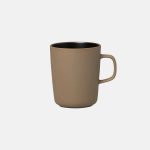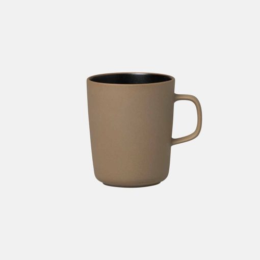 The Oiva mug is made of brown stoneware, which is dishwasher, oven, microwave and freezer proof. The outside of the mug is naturally rough with no glaze while the inside has a matt black glaze. Please note that variations in tone and colour are naturally occurring characteristics of brown stoneware, making each product charming and unique.