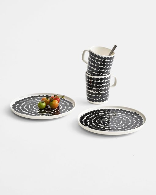 This salad plate is decorated with the Räsymatto motif. It’s dishwasher, microwave, and freezer safe; glazed colors and pattern remain vibrant.