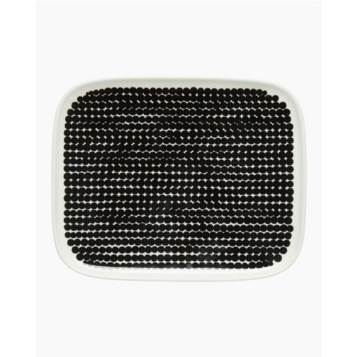 This small rectangular plate made of white stoneware features the Räsymatto pattern. It’s dishwasher, microwave, and freezer safe; glazed colors and pattern remain vibrant.