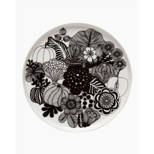 A central motif of flowers and berries from the Siirtolapuutarha pattern covers this white stoneware plate. It’s dishwasher, microwave, and freezer safe; glazed color and pattern remain vibrant. This product was designed to celebrate the 100th anniversary of Finland’s independence.