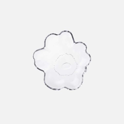 This small glass plate is made in the shape of the Unikko flower. We recommend washing the plate by hand.