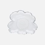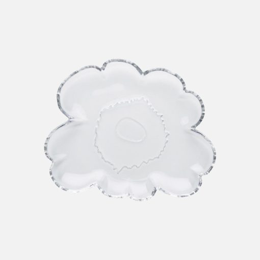 The Unikko flower shaped plate is made of glass. We recommend washing the plate by hand. While it can be machine washed, the unique design may be at risk of damage if in contact with other dishes.