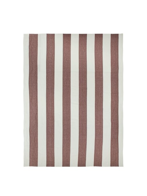 The Hale Tablecloth is crafted from a yarn-dyed linen and cotton blend. Its textured weave and decorative stripes bring an artisanal touch to your dining setting.