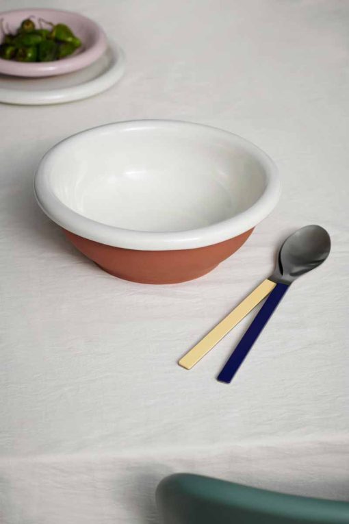 Designed for HAY by Muller Van Severen, the MVS Serving Spoon combines the designer duo’s characteristically minimalistic aesthetics and considered use of colour in a distinctive and functional set of serving spoons. Made in brushed stainless steel with a painted handle, the two generously sized spoons come in contrasting colours that bring elegance and originality when serving dishes. Suitable for using in a dishwasher.