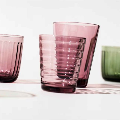 The versatile tumbler (22 cl) designed by Aino Aalto is now available in the beautiful calluna colour. Inspired by nature, the colour is easy to combine with other pieces in the series. The dishwasher-safe tumbler is suitable for both everyday table settings and special occasions. The Aino Aalto series has been produced by Iittala since its introduction in 1932. The pressed glassware tumbler is inspired by the circles that form when a stone is thrown into the water. It is available in two sizes and several colours that are easy to combine. The charmingly simple shape of the Aino Aalto tumblers is based on versatility and stackability. A set includes two tumblers (22 cl).