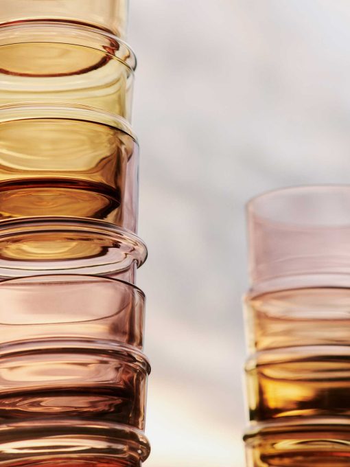 The Boya Tall Glasses draw inspiration from buoys and ancient Mediterranean glassware. Named after the Spanish word for ‘buoy,’ their playful shape adds charm to any setting. Sold as a set of two, each mouth-blown solid-coloured glass carries a unique artisanal character. Their warm, vibrant hues evoke the spirit of summer, while their stackable design ensures practicality and easy storage.
