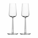 Internationally recognized product designer Alfredo Häberli created the Essence collection to maximize simplicity, versatility and functionality in drinkware. Essence glasses share identical bases and stems while each bowl is uniquely crafted to optimize appreciation of the beverage. The result is Finnish glassware that features modern, minimal design with edgy character. The Essence 2 pc champagne glass set features a rare thin lip and a delicate stem making it sensually pleasing to hold and handle. The tall, narrow flute allows the champagne to stay chilled and keep its signature carbonation. Essence is amongst the most highly acclaimed drinkware in the world. An elegant gift idea for weddings, anniversaries and housewarmings.