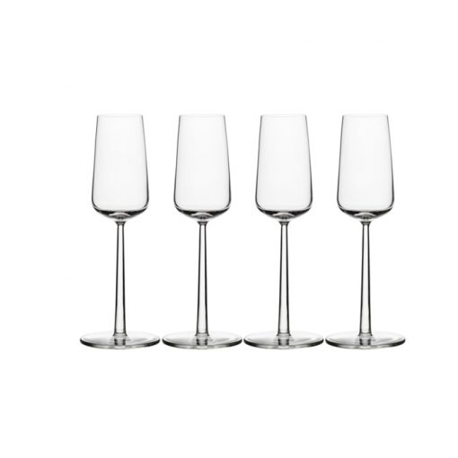 Product designer Alfredo Häberli created Essence to maximize simplicity, versatility and functionality in drinkware. Essence glasses share identical stems and bases while each bowl is carefully crafted to optimize the taste, appearance and aroma of the beverage. The result is Finnish glassware that features modern, minimal design with edgy character that has become a contemporary classic in drinkware. The Essence 4 pc champagne glass set showcases a rare thin lip and a delicate stem making it sensually pleasing to hold and handle. The tall, narrow flute brings instant elegance to every occasion while also allowing the champagne to keep its chilled temperature and signature carbonation. A perfect gift idea.