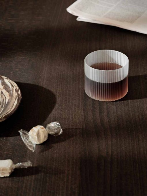 The frosted Ripple range adds a serene, contemporary touch to our classic Ripple glassware collection. Mouth-blown by skilled artisans, these pieces retain the distinctive rippled surface and geometric contours, now presented in a beautiful frosted finish. This new colourway enhances the unique qualities of each piece, seamlessly blending traditional craftsmanship with modern design. This set of four low glasses are ideal for serving water or other refreshing libations.