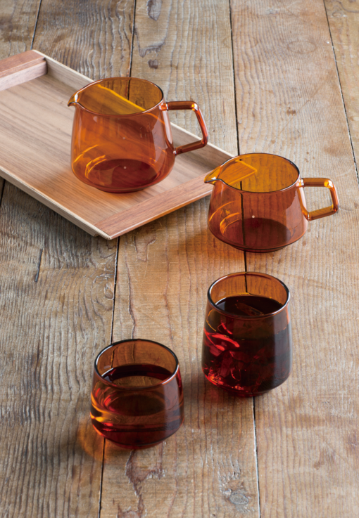 Like looking into an old photo, SEPIA evokes a sense of nostalgia and comfort. The square shaped handles of cups and the gently curving form of tumblers allow you a firm grip. The tray is elegant with thick handles made of solid wood, and there is coating on its surface that prevents items from slipping when serving. Made of heat-resistant glass, items can be used for hot and cold drinks.​