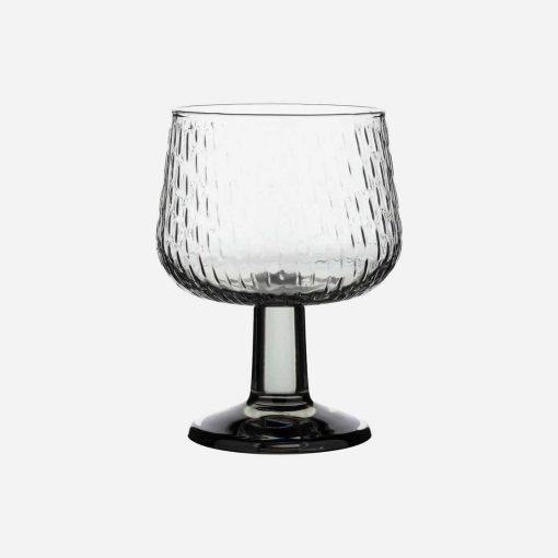 The Syksy glass goblet is made of mouth-blown glass. This product is packed in the Marimekko Logo pattern box.