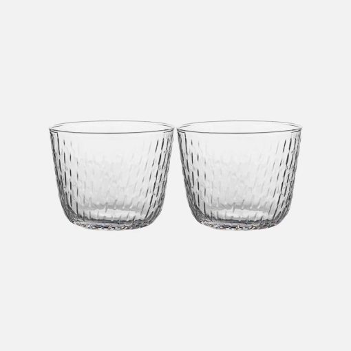 The Syksy (autumn) glass series, designed by Matti Klenell, continues with the exploration of nature and weather phenomena familiar from Marimekko’s art of printmaking. The overarching theme of the new series is the shapes of autumn rain, from a gentle drizzle to powerful, drenching downpours.