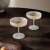 The frosted Ripple range adds a serene, contemporary touch to our classic Ripple glassware collection. Mouth-blown by skilled artisans, these pieces retain the distinctive rippled surface and geometric contours, now presented in a beautiful frosted finish. This new colourway enhances the unique qualities of each piece, seamlessly blending traditional craftsmanship with modern design. This set of two champagne saucers, perfect for toasting special moments, elegantly serves sparkling wines, refined cocktails and even creative desserts.