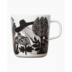 This white stoneware mug is covered with a garden flower motif designed by Maija Louekari. It’s dishwasher, microwave, and freezer safe; glazed colors and pattern remain vibrant.