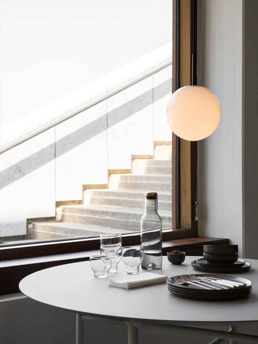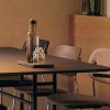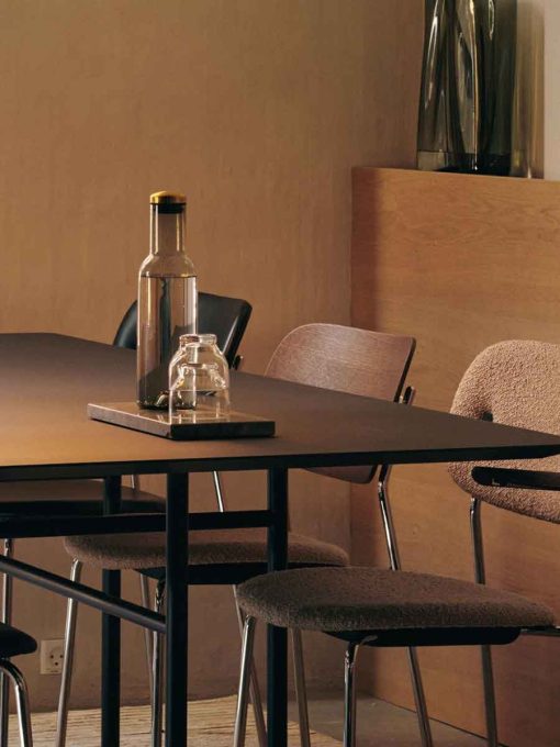 A tall, slim carafe that can be used for any liquid, this mouth-blown glass bottle carafe comes with a brass or steel lid. Use it for freshly made juice at breakfast or fruit-infused water during a meeting. The bottle is available in smoked as well as clear glass.