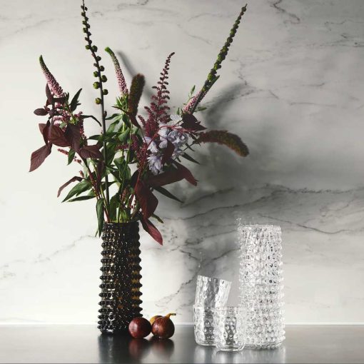 Danish Summer Carafe can be used as a jug containing refreshing drinks, a vase for beautiful flowers or as a piece of glass art in an aesthetic still life. Each individual jug is mouth-blown, so all products have their own unique and varying shape, color and pattern united in a piece of aesthetic craftsmanship.