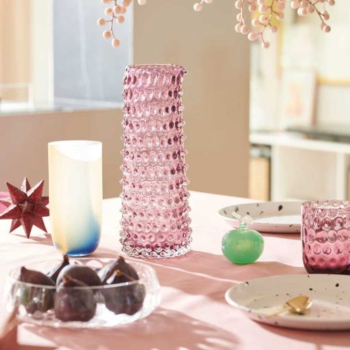 Our Danish Summer Carafe can be used both as a jug containing refreshing drinks, a vase for beautiful flowers or as a piece of glass art in an aesthetic still life. Every single jug is mouth-blown, so all products have their own unique and varying shape, color and pattern united in a piece of aesthetic craftsmanship.