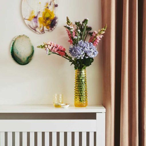 Our Danish Summer Carafe can be used both as a jug containing refreshing drinks, a vase for beautiful flowers or as a piece of glass art in an aesthetic still life. Every single jug is mouth-blown, so all products have their own unique and varying shape, color and pattern united in a piece of aesthetic craftsmanship.