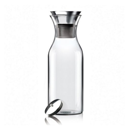 • The glass carafe has a drip-free spill proof bottle pourer, opens automatically when you pour, This means that you avoid the fridge aftertaste or ice cubes splashing down into the tumbler, The lid is composed by a round stainless top cover, a silicone bottom lid and a stainless stem that holds both items together