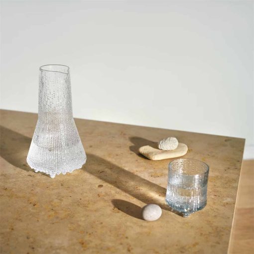 Ultima Thule pitcher is part of Iittala’s iconic glassware range created in 1968 by Tapio Wirkkala. The inspiration for the collection was found from the melting spring ice of Northern Finland. Ultima Thule is based on a so-called ice glass technique developed together by Wirkkala and Iittala – the forms imitate nature and gradually change as the molten glass burns the surface of the wooden moulds. In 1969, the Finnish airline Finnair chose Ultima Thule for its new route from Helsinki to New York, and the glassware is still in use at Finnair’s Business Class. Ultima Thule crystallizes the expressive power of Finnish glass design, and the distinctive classic contributed to Iittala’s international breakthrough. Ultima Thule has become one of Iittala’s most popular glassware ranges and it shows very well Wirkkala’s view according to which simple objects are the ones that require most work.