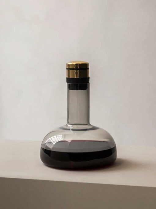 With minimalist silhouettes and high functionality, the Bottle Collection is all about finding beauty in simple things. Water and wine: these two drinks can bring much joy, and even more so when enjoyed with sleek glassware. These useful pieces made from mouth-blown glass are now available in smoked glass. The clear Collection is timeless, while the new colourway brings a more contemporary look while maintaining the streamlined forms. Open a bottle of wine, place Wine Breather over the bottleneck and flip it all upside down – the wine will run through the decanting unit and into the big surfaced carafe for perfect aeration. Flip it all around once more to get the wine back in the original bottle, pour it and taste the advantages of a wine with 10 times the oxygen.