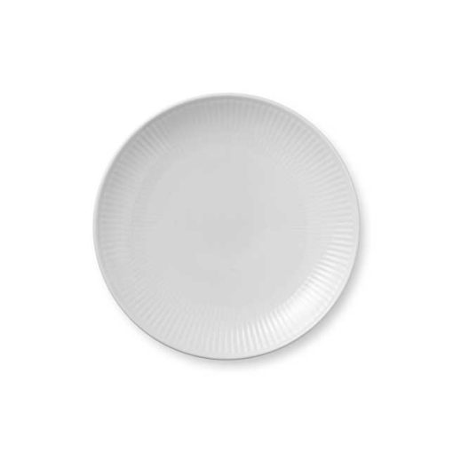 The rimless design of this White Fluted 19 cm Plate embodies the simplistic style of the timeless collection. Hand carved flutes adorn the unpainted porcelain, creating a blank canvas waiting to be filled with colourful dishes. The size of 19 cm makes the plate ideal as a lunch plate or dessert plate. Created from the base shape of the Blue Fluted Plain collection, White Fluted is minimalistic, unadorned and eternally classic. The pure whiteness of the simplistic collection makes each piece stand out it handmade elgance, emphasising the iconic flutes in the porcelain. Every piece of White Fluted is beautiful on its own and in combination with one or more of Royal Copenhagen’s hand painted dinner services.