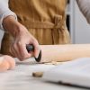 This unique rolling pin features wide, contoured handles that provide comfortable support for the hands and wrists whilst also preventing your knuckles from hitting the worktop as you roll.