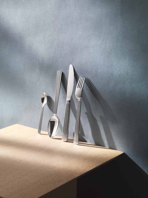 Designed in 1939 by Swedish Prince Sigvard Bernadotte, the Bernadotte sterling silver cutlery pattern is a fine example of the functionalist period of the early 1930s. The true functionalist ideal — to create objects of everyday use for everyone — is contradicted by Bernadotte creating the pattern exclusively in silver. The pattern is decorated with long grooves and a rounded handle which is the signature style of the creator.
