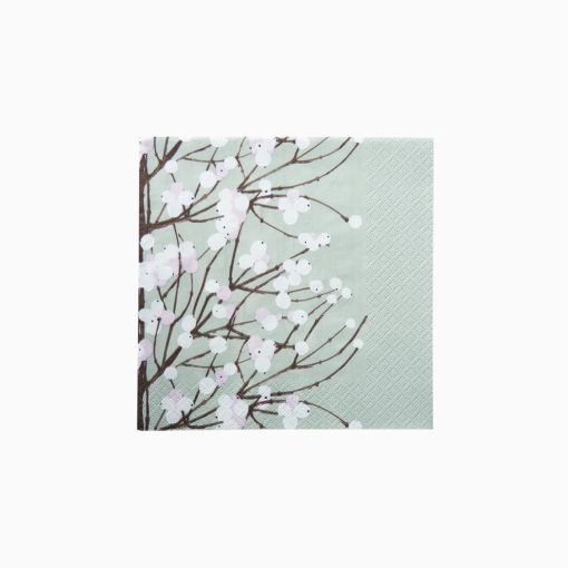 These classic Marimekko Lumimarja napkins in sage green bring a sense of calm and elegant Finnish design to your table setting. The Lumimarja pattern, designed by Erja Hirvi in 2004, is inspired by a wintery branch bearing berries – a delicate and beautiful motif suitable for various occasions.