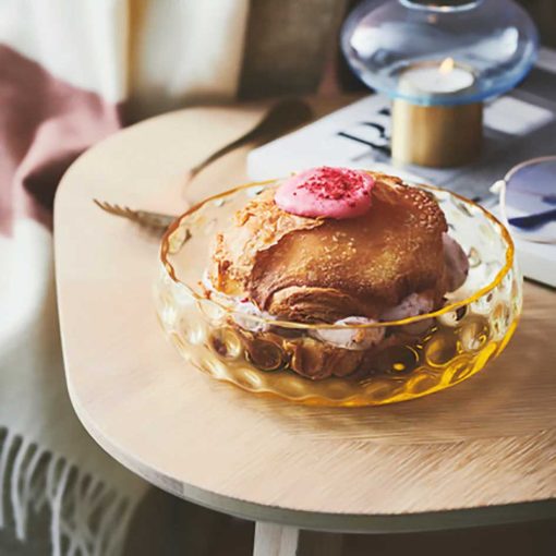 Our Danish Summer Bowl came about by chance, as the design was originally intended as a cocktail glass. During the process, we stood with the top of the glass without a foot, and in that way we saw the design from a new angle, as we stood with a small beautiful bowl in our hands. The bowl is available in three different sizes, which have countless uses. For the salad, Friday sweets, breakfast, Christmas decoration or just for decoration. Each individual bowl is mouth-blown and rounded in wooden form, so that all products have their own unique and varying shape, color and pattern united in a piece of aesthetic craftsmanship.