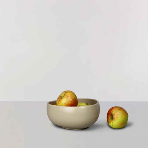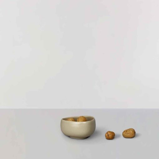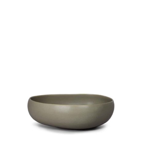 The soft triangular shape is characteristic for Ro Collection tableware. Created in hand cast stoneware and glazed in uniquely developed glazes the Signature Bowl series consist of five bowls with semi-matte glazes in the colours Soft Sand, Pale green and Deep ocean, inspired by the Danish nature.