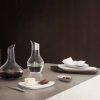 The carafe is made from mouth-blown and shaped glass and comes with a mirror-polished stainless steel coaster.