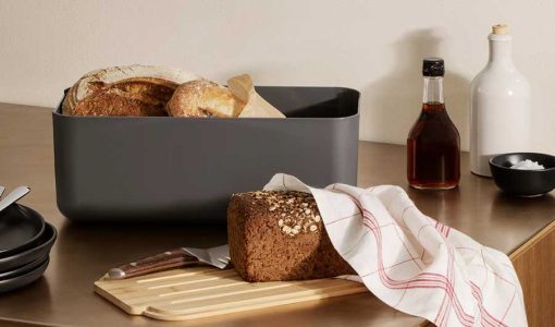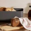 Store your bread correctly to keep it fresh for longer in a practical bread bin on your kitchen countertop. The oiled bamboo bin lid is dual purpose, serving as a built-in durable chopping board with practical grooves for catching crumbs when a loaf is sliced on the board. The bin body is dishwasher safe, but the lid must be hand washed.