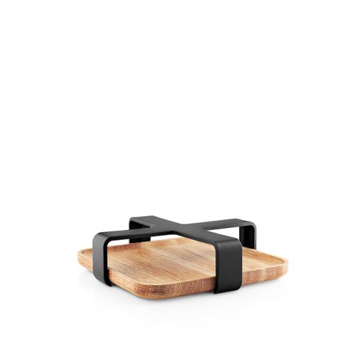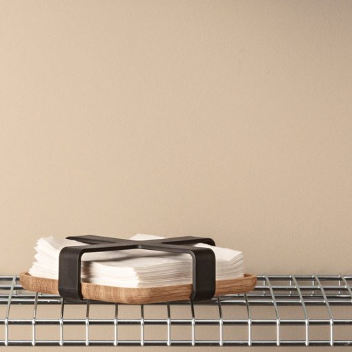 Having napkins on the table makes any day a little more special. With its timeless, stringent design, the matt black plastic and oiled oak napkin holder is a practical yet decorative feature on the dining table. It is a great way to keep napkins tidy – you can even take it out on the balcony or patio. To fill with napkins, just loosen one side of the black cross, insert the napkins and clip back onto the board. Easy to clean. Simply wipe with a damp cloth. Oak should be oiled regularly.