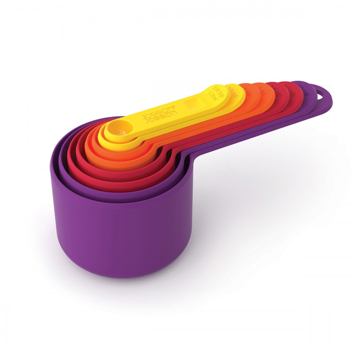 An evolution of the previous 5-piece set with the addition of tablespoon and teaspoon measurements, these space-saving cups snap neatly together when not in use, meaning that the set stays well-organised and easy to store.