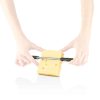 A cheese cutter with metal wires and the option of cutting in two different slice thicknesses
