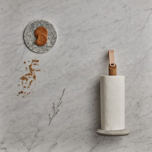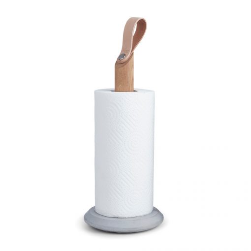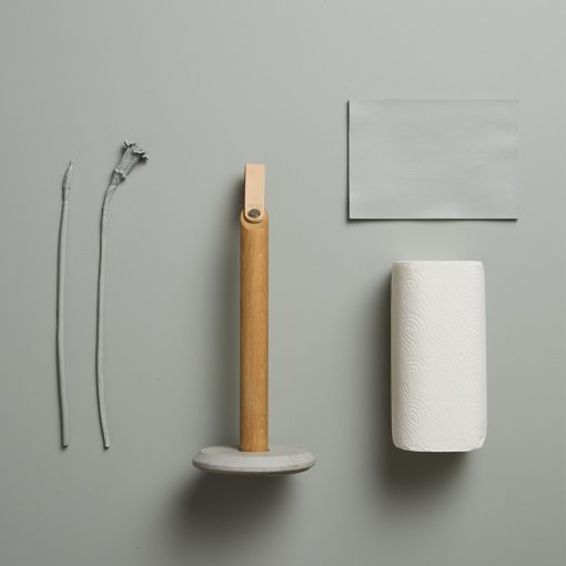 Beautifully designed and crafted, GRAB combines genuine high quality materials with exceptional Scandinavian design to create a kitchen roll holder that takes pride of place on your table or in the kitchen. Rather than being hidden away, GRAB turns the kitchen roll holder into a design element that demands to be seen. With a raw industrial feel, GRAB combines leather, oak and concrete and celebrates the delicate interplay between these elements. A solid concrete base gives GRAB a weighty feel which keeps it steady on the table and adds to a strong sense of its Nordic design heritage with a rough stone like expression. Even when the kitchen roll itself is all gone, GRAB makes an eye catching design piece standing alone on the table. Designed for functionality and with a focus on details, GRAB has been stripped down to its essential parts with no extra superfluous decorations, resulting in a raw and exciting object. GRAB is available in light and dark variants and includes small felt pads on the concrete base to ensure it is scratch proof.