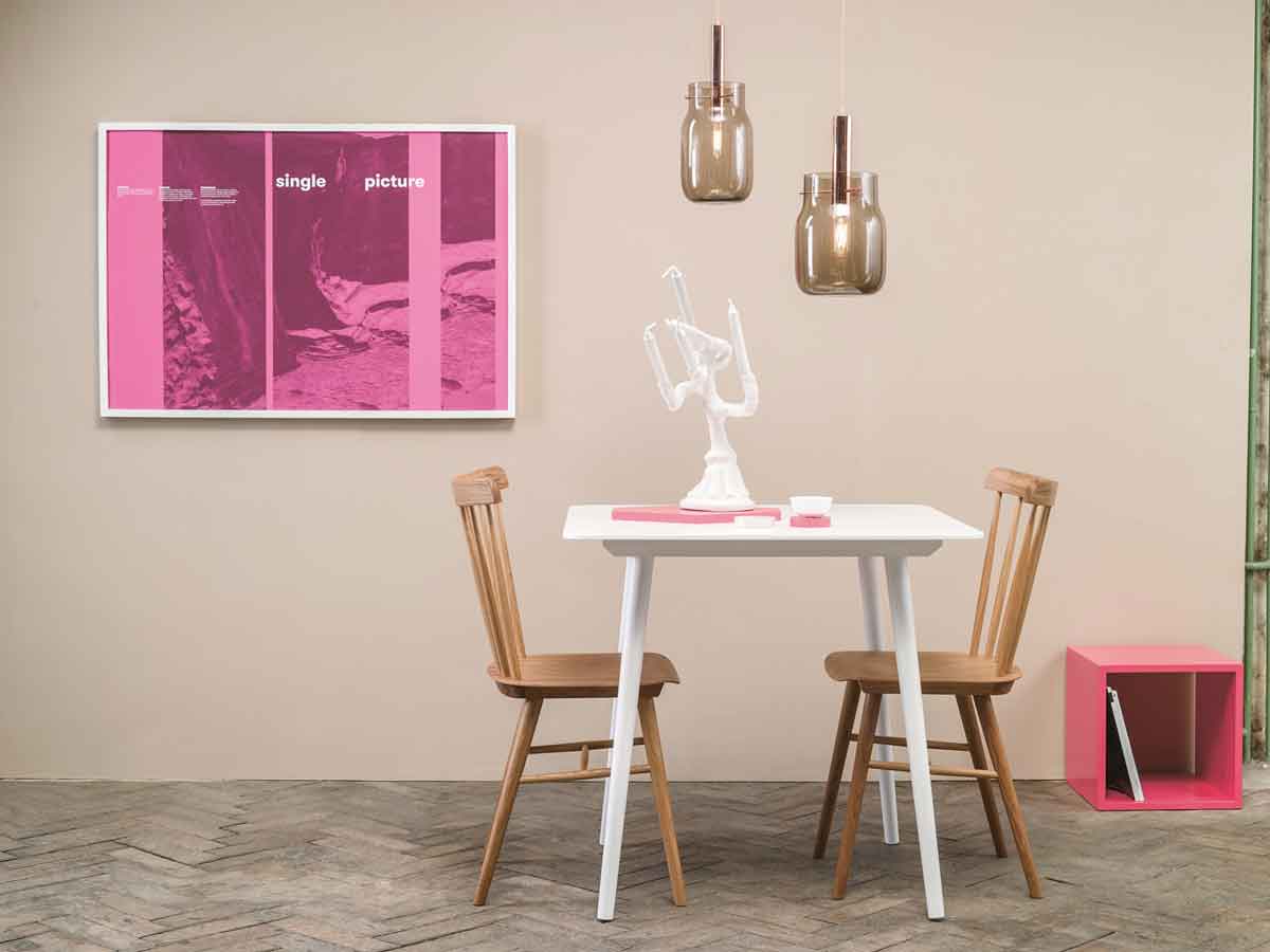 The simplicity, retro style and variety of available colors allow Ironica chair to become an interior solitaire. The back part is made of seven hand-smoothed bars holding the bent backrest. This chair is easy to combine with its namesake table.