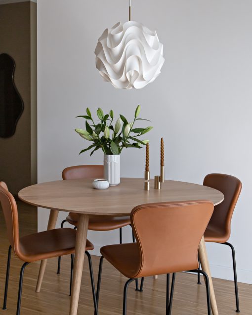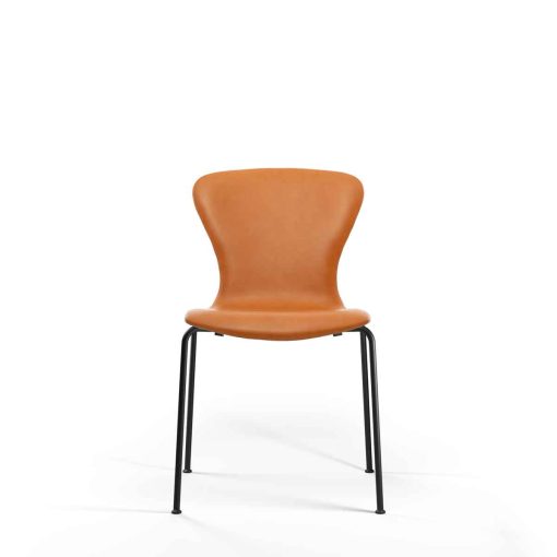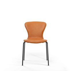 The chair is upholstered by skilled craftsmen who carefully select and hand-cut the leather used for the upholstery. The shell consists of 12 mm pressed FSC certified beech veneer, upholstered with 20 mm Oeko-Tex certified cold cured foam, providing an excellent seating comfort. The chair is upholstered with Oeko-Tex certified protected leather, which has a smooth, polished surface with a subtle fine-printed texture. The leather is water-repellent, dirt-repellent, stain-resistant, durable, and easy to maintain.