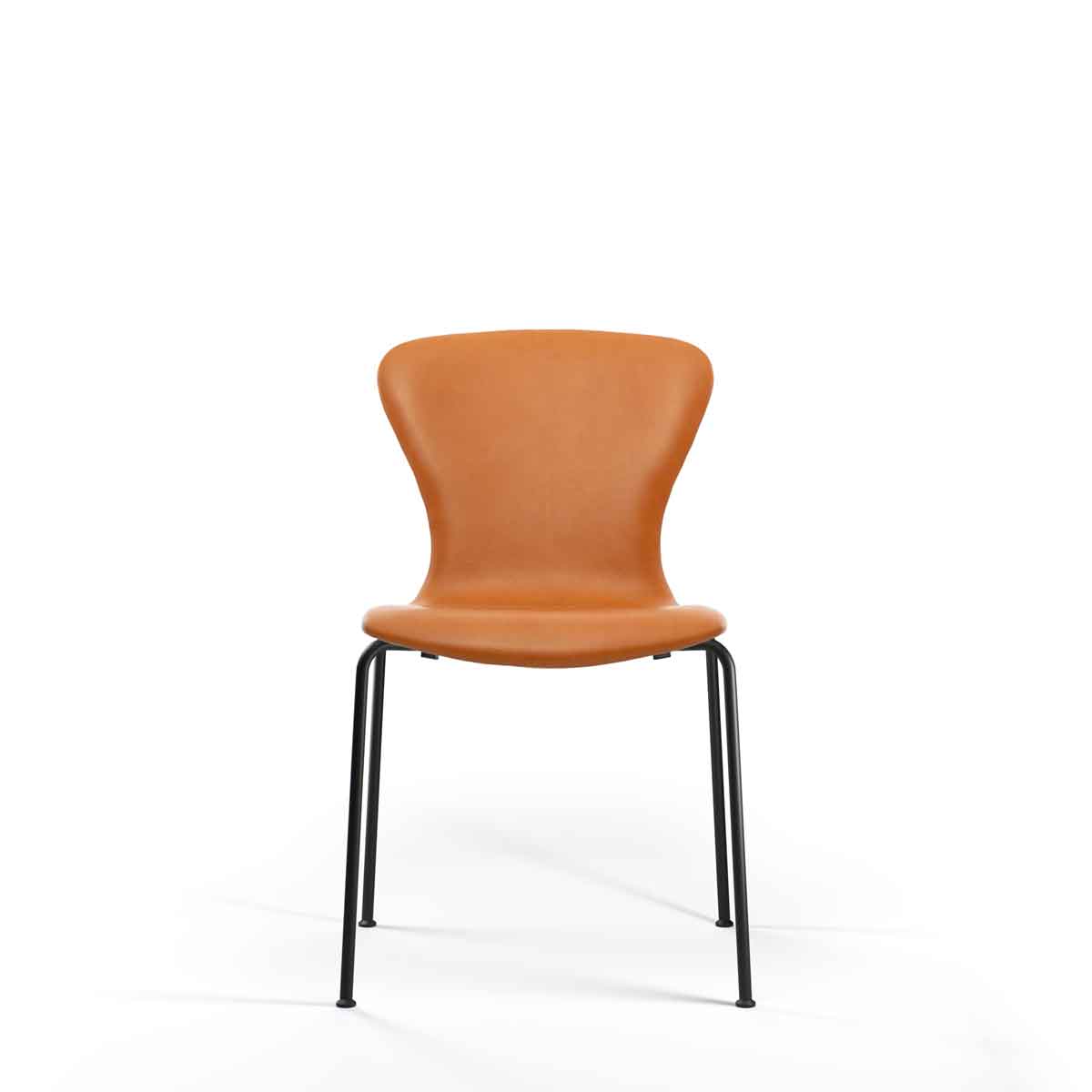 The frame is made of 16 mm powder-coated steel. The tube frame is stackable, but we do not recommend stacking the fully upholstered chairs for extended periods of time as it may leave marks in the upholstery.