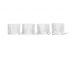 Mouth blown into the mould, this set of four low glasses features a distinctive, beautifully rippled surface. The vertical lines add a strong and sophisticated look to their understated, classic form and are perfect for casual dining. Pair them with other pieces in the Ripple glass collection for a unified dining experience.