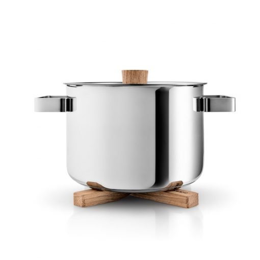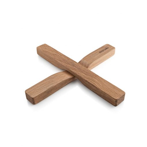 The trivet can be placed crossed beneath pots and small dishes, but divided in two for larger dishes, for example roasting tins. Thanks to the built-in magnets, the trivet stays with the saucepan as it is moved around the table. After use, it folds away neatly into the drawer.