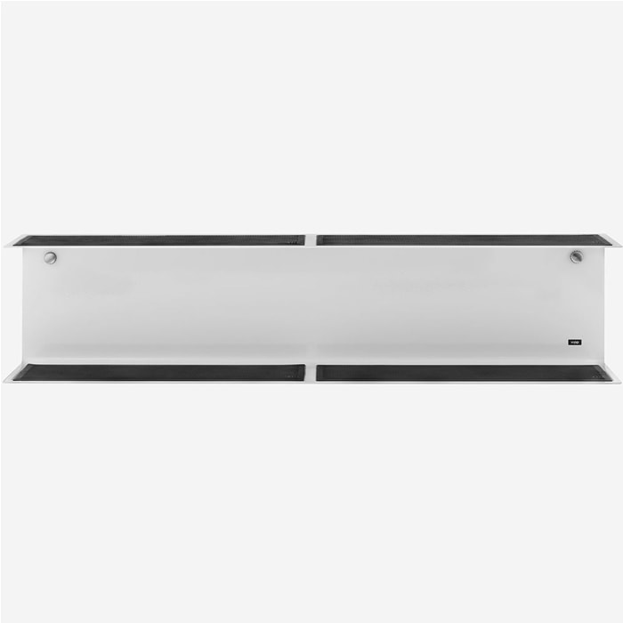 The is the largest of the two Vipp shelves. With two surfaces, the Vipp shelf is a functional storage option for every room of the house. An indentation in the two surfaces holds a silicone mat for protection of delicate items.